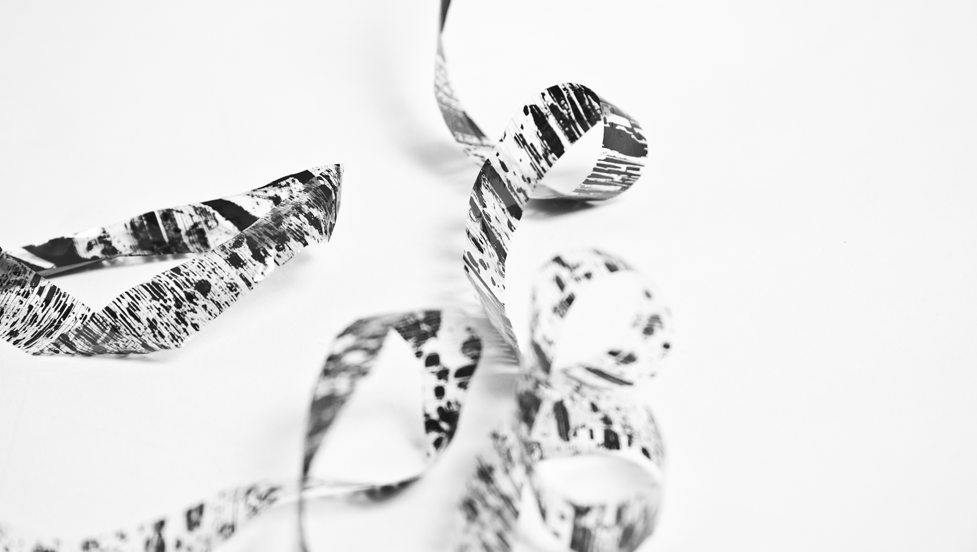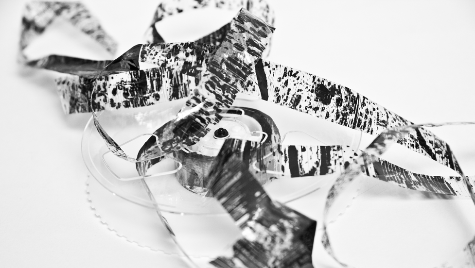 In tape from tape, Clear adhesive tape is stuck to videotape and then peeled off quickly removing with it parts of the surface. The tape and videotape is then stuck to clear 16mm film and projected.